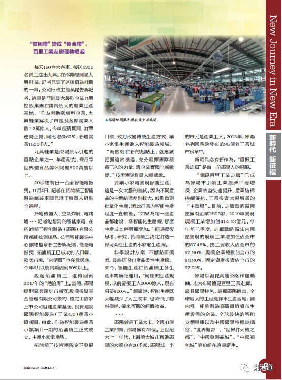 每天160台大客车,接送6300名员工进出九兴。在邵阳经开区九兴鞋业,记者见到了这样蔚为壮观的一幕。公司行政主管吴昆告诉记者,这里是亚洲最大制鞋企业九兴控股集团在国内最大的鞋业生产基地。“作为劳动密集型企业,九兴鞋业解决了市区及各县就业人数1.2万余人。今年疫情期间,订单逆势上扬,同比增长60%,新增就业1500多人。”