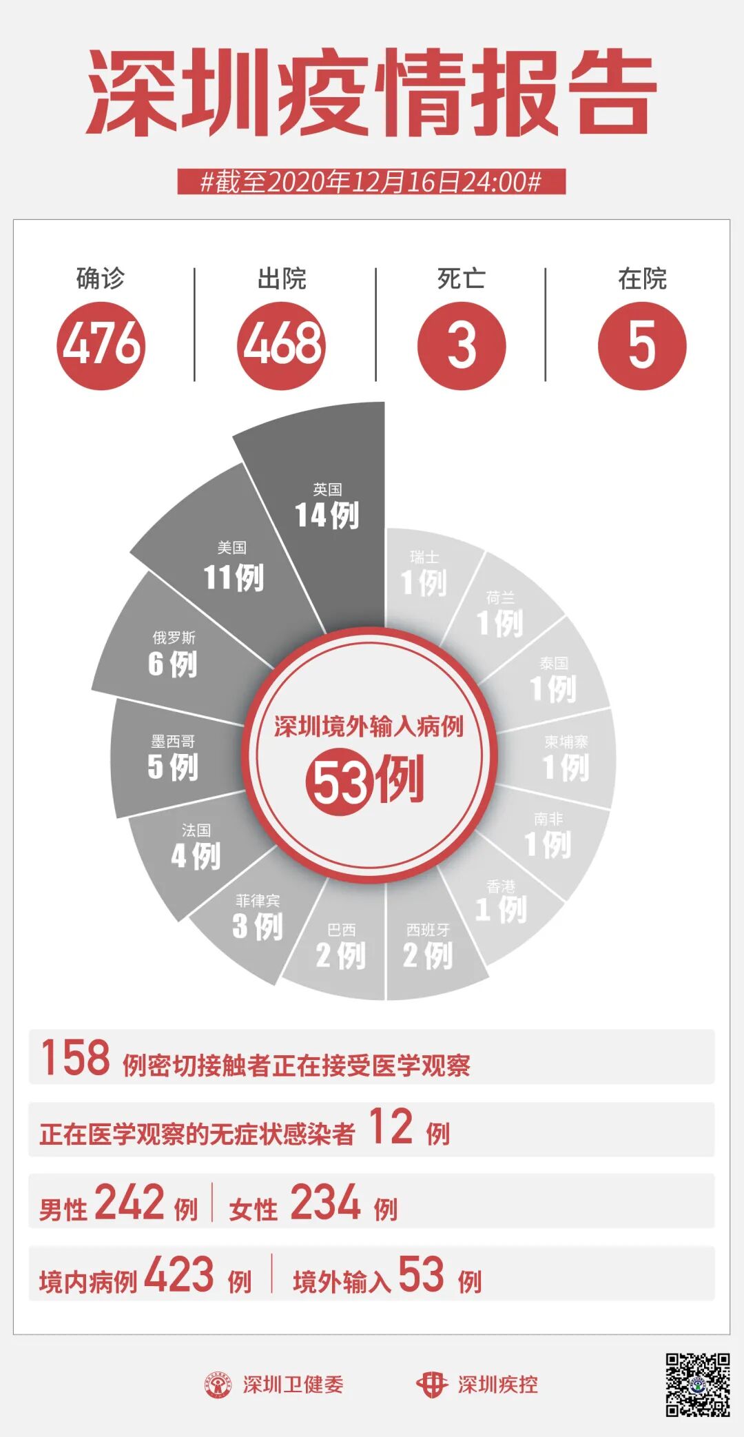 截止12月16日24时,深圳市累计报告新冠肺炎确诊病例476例。