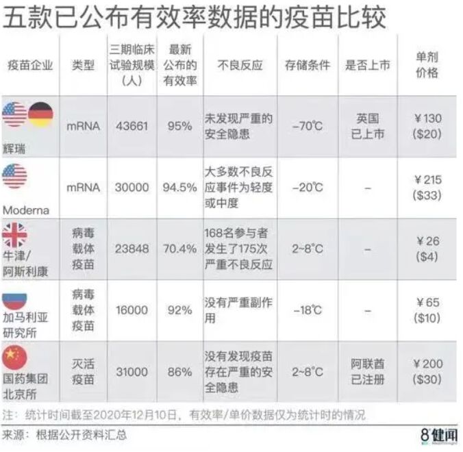 从疫苗开发到批准临床使用,只花了不到一年的时间,这打破了所有历史记录。此前有不少行内专家都不认为一年之内批准新冠肺炎病毒疫苗存在可能性。要知道,以前的疫苗从开发到批准都花了数年时间,甚至数十年。