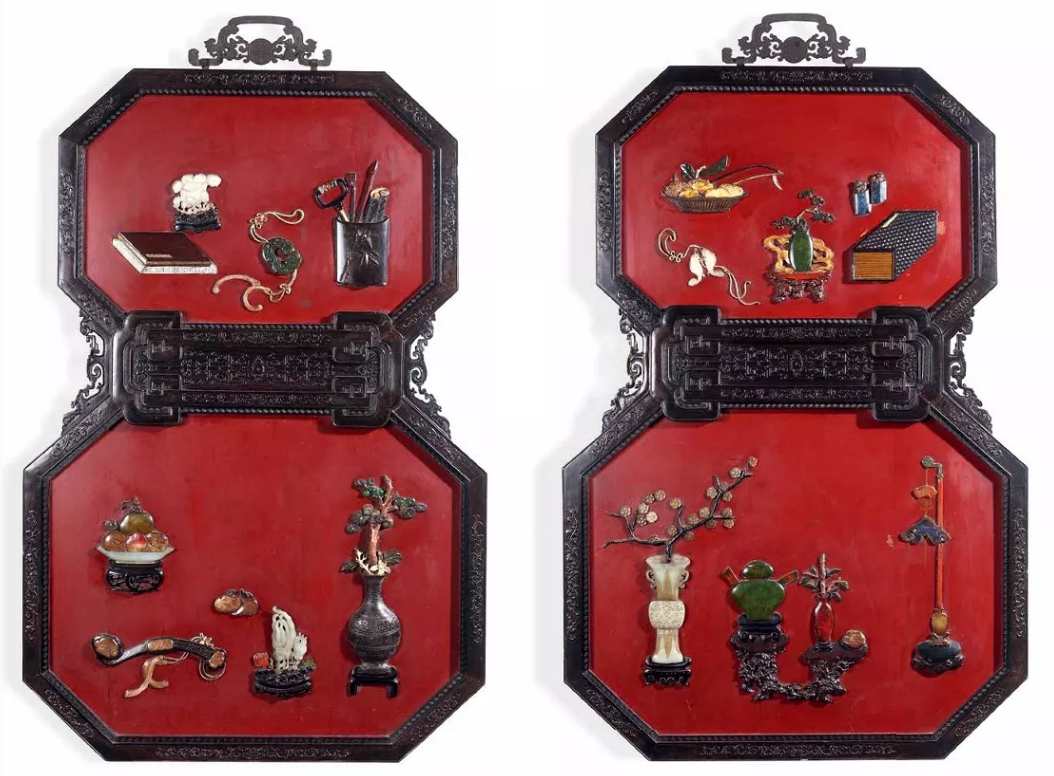 此件作品工艺精湛、用料考究,是难得的装饰艺术品,且集博古之文人逸气和传统吉祥意象为一体,更添一丝趣味。