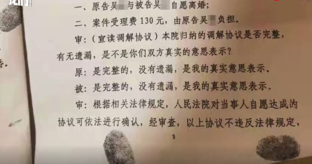 吴女士表示,今年9月7日,丈夫吴某让她去法院参加离婚调解,因她不想离婚便没有前去。但9月18日,她到婚姻巡回法庭调档案发现,她已和吴某离婚,并签署了她本人姓名的离婚调解书。