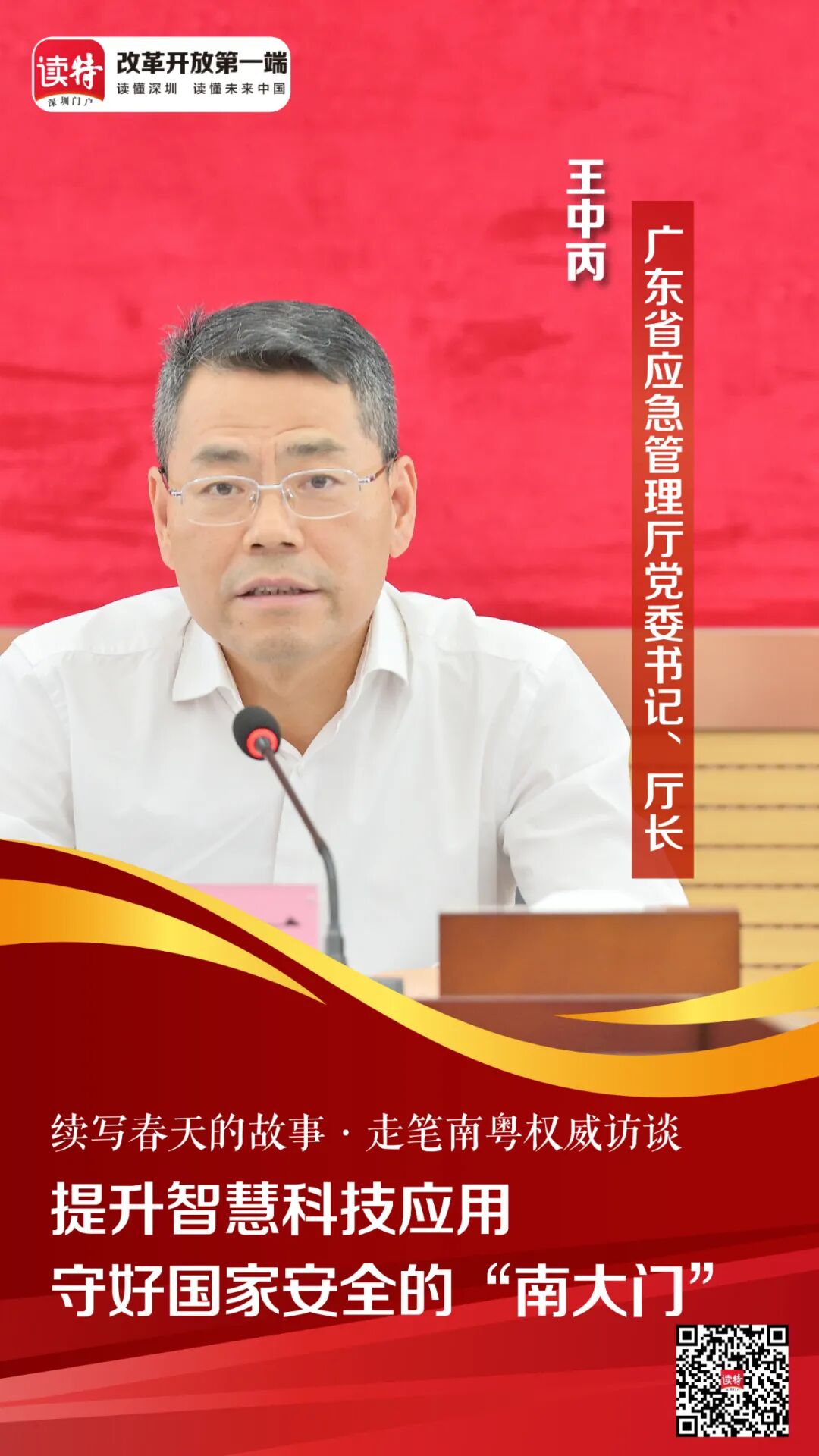 日前,广东省应急管理厅党委书记、厅长王中丙在接受深圳报业集团记者采访时表示,支持深圳建设中国特色社会主义先行示范区,广东应急管理部门必须坚持把维护公共安全放在贯彻落实总体国家安全观中来思考,“十四五”期间,积极推动科技应用,以构建智慧城市应急管理为抓手,更精准地防范化解重大风险,为深圳高质量发展服务,共同守好国家安全的“南大门”。