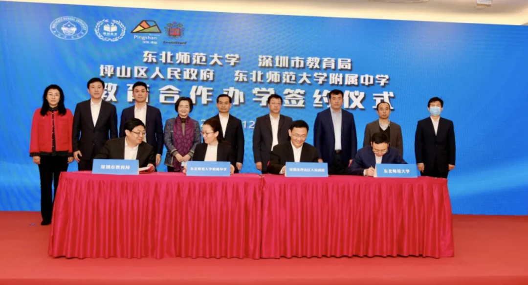 其中,在一周前的12月16日,东北师范大学、深圳市教育局、坪山区政府和东北师范大学附属中学四方代表已经举行了东北师范大学附属中学深圳学校(高中)合作项目签约仪式。