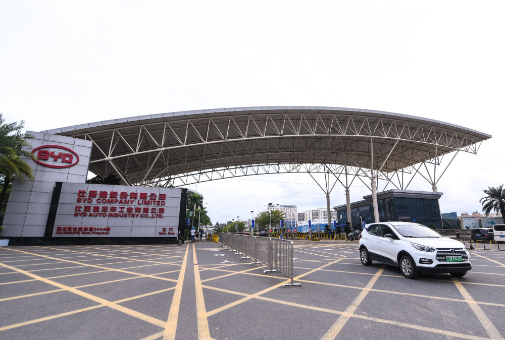 9月23日,一辆比亚迪新能源汽车驶出位于深圳市坪山区的比亚迪总部。新华社记者 毛思倩 摄