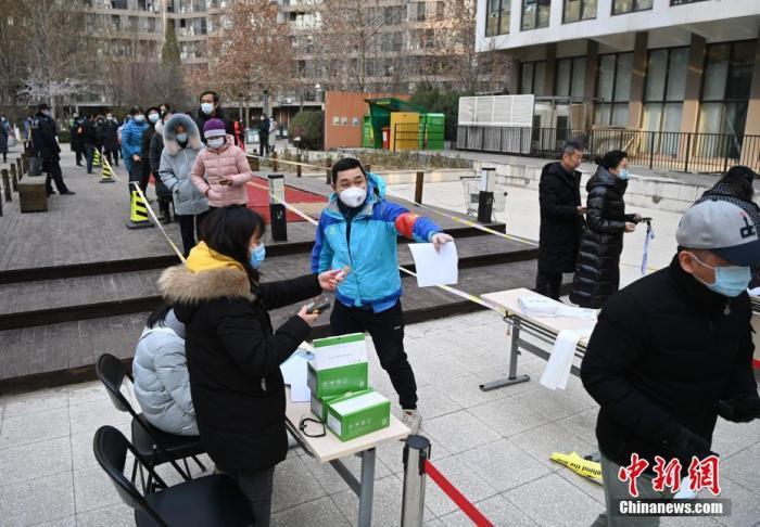 ↑12月26日,根据新冠肺炎疫情防控要求,北京市朝阳区望京地区望京街道、东湖街道开展为期两天的社区全员核酸检测。 中新社记者 侯宇 摄