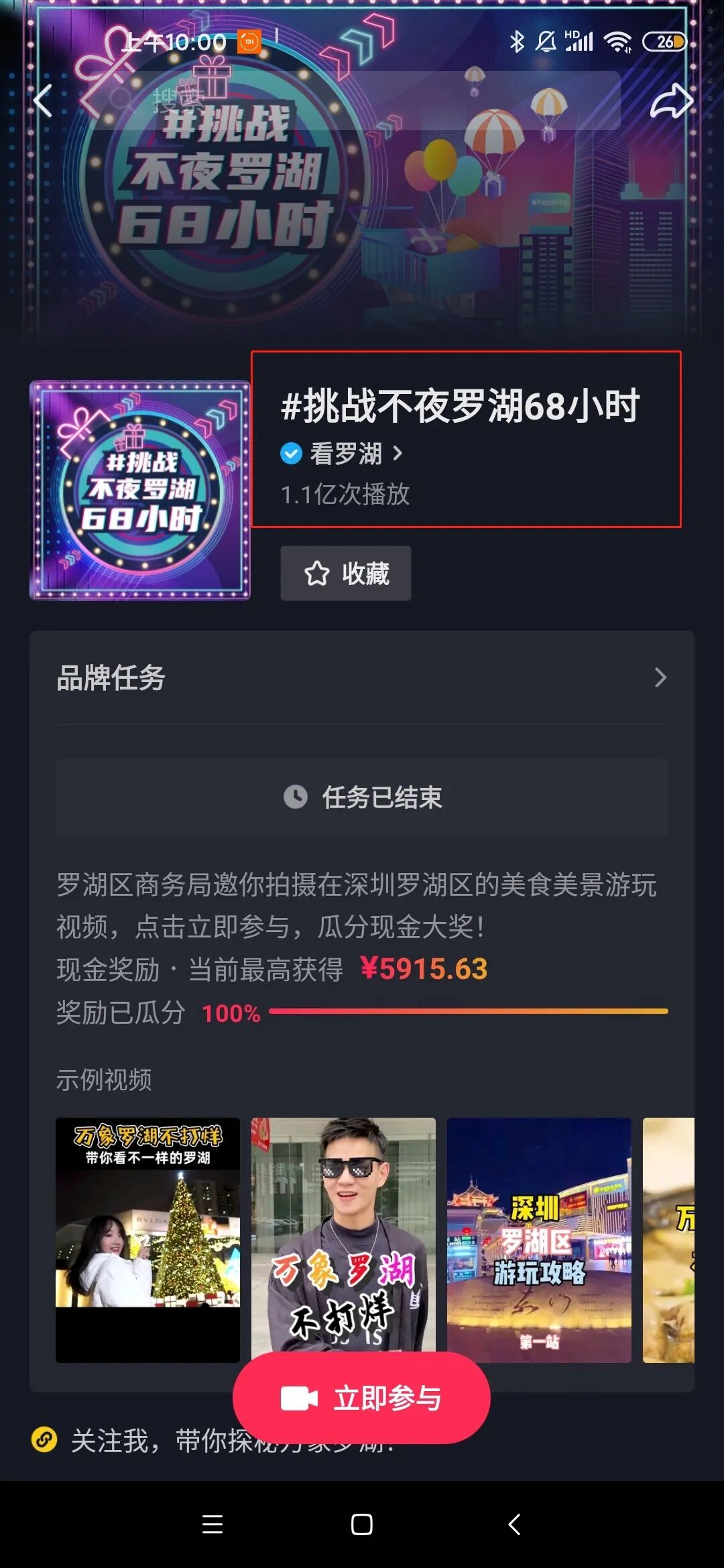 截至2021年1月4日,“挑战不夜罗湖68小时 抖音线上话题”总播放量高达1.1亿次,并在抖音短视频平台持续发酵,引导用户解锁趣游罗湖新姿势,
