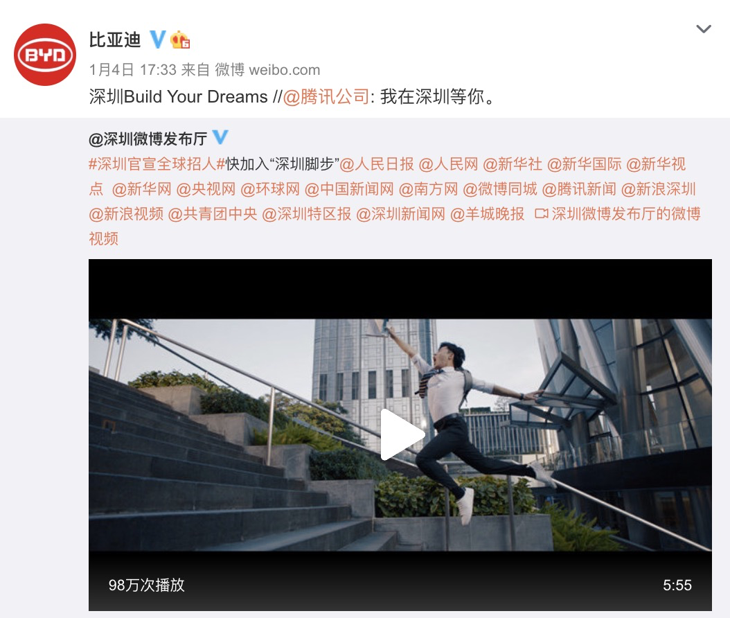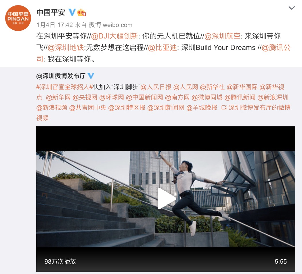 到了4日晚间,腾讯、比亚迪、平安、深航、华大等众多深圳企业接力转发《深圳脚步》。有媒体评价说:牛企“深圳队”全员出动。更有网友笑言,“这是一条市值过万亿的转发”。