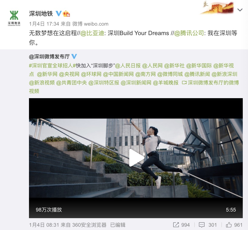 “深圳官宣全球招人,快加入 “深圳脚步 ”!