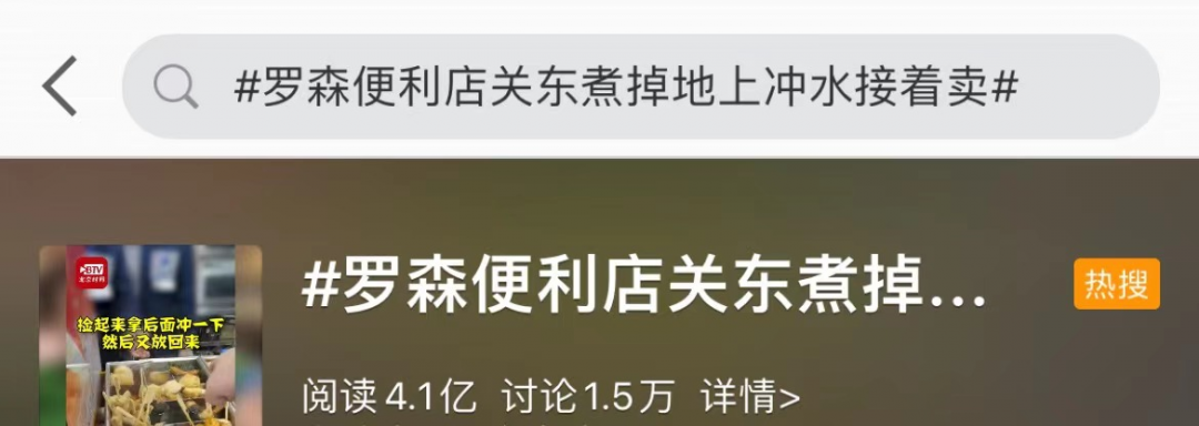 1月4日晚,一条#罗森便利店关东煮掉地上冲水接着卖#的消息登上微博热搜。