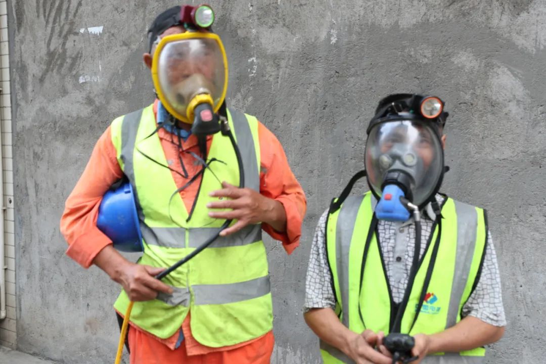 空间狭窄且大量有毒有害气体聚积施工人员需带防毒面具作业