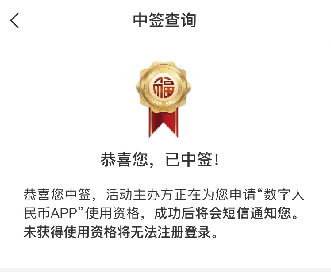 为了感谢大家的热情参与,主办方为未中签的小伙伴也颁发了一枚“福田有礼数字人民币红包”试点活动参与勋章,感谢您对数字人民币外部可控试点和深圳建设中国特色社会主义先行示范区的大力支持!