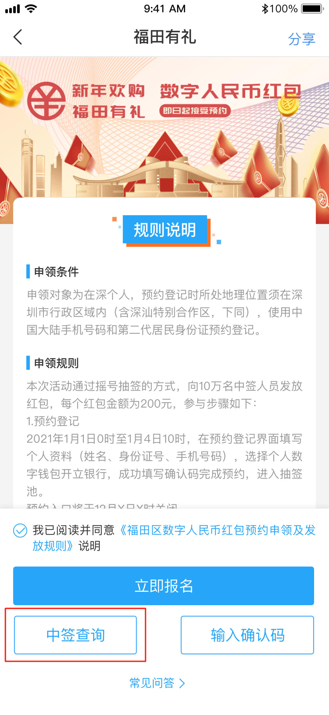 2021年1月4日10时—12时,“福田有礼数字人民币红包”活动主办方对1,861,758名在深个人进行了摇号抽签,抽出了10万名中签个人。