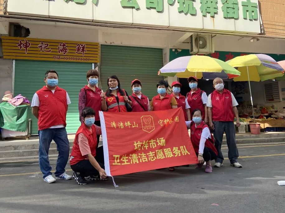 坑梓市场卫生清洁志愿服务队是在坑梓社区义工队的基础上,由10余名自愿报名的骨干义工组合而成,旨在协助坑梓第一市场的卫生班进行卫生死角大扫除活动。每周活动通过智慧党建发布,转至居民群和义工群,供义工骨干和居民报名参与。截至目前,坑梓市场清洁志愿服务队已开展清洁志愿服务20余次,获得居民、商家、工作人员的一致好评。