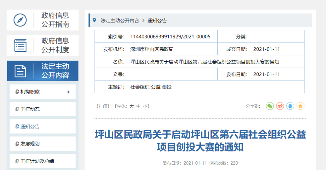 (四)大赛详细事宜,将另行通知。本次大赛有关公示,请登录坪山区政府在线网站,在“通知公告”栏中查看。