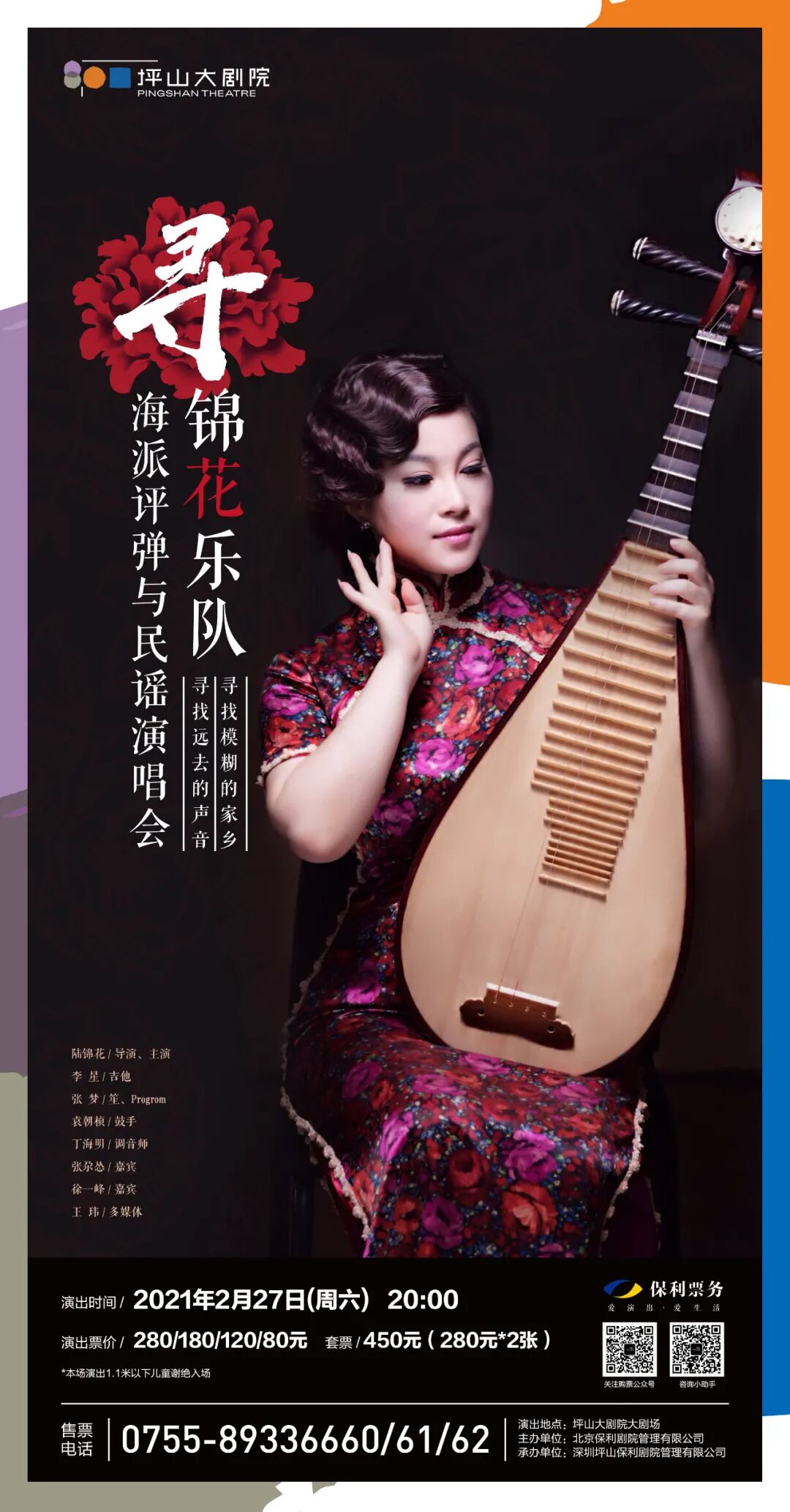 2021年2月27日(正月十六),上海评弹团“丽调”传人陆锦花将携手“锦花乐队”在深圳坪山大剧院献演一场以《寻》为题的海派评弹与民谣演唱会,1月13日下午15:00准时开票!