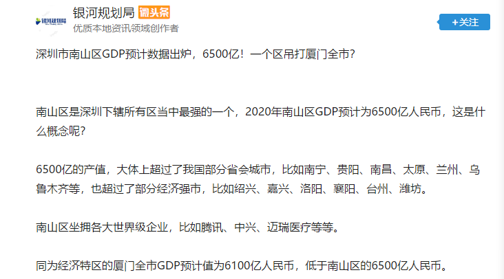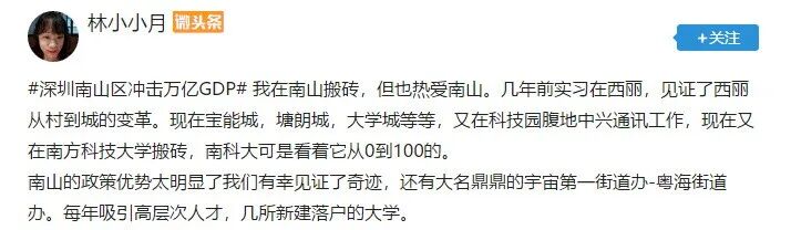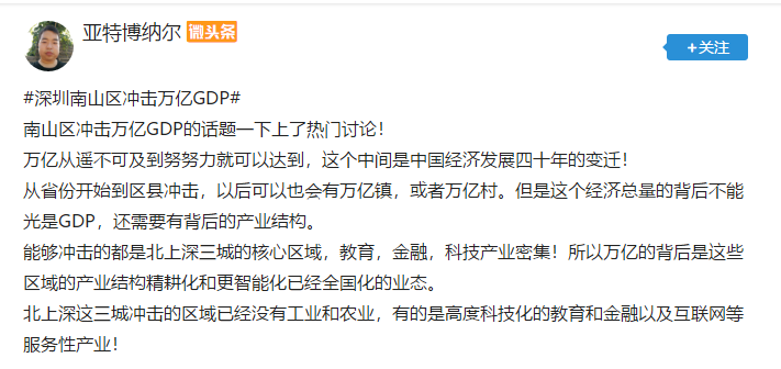 小政也发现,此消息一出,不少媒体和个人都表达了对南山区加入“万亿俱乐部”的信心。