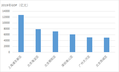 北京虽未拔得头筹,但比起上海浦东新区“一枝独秀”,北京海淀、朝阳、西城三个城区GDP也都在5000亿元之上。
