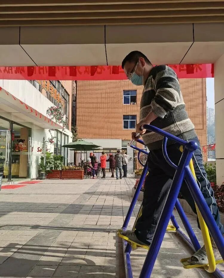 13日上午10点,重庆渝中区某养老院中,古先生正在院里锻炼身体。古先生今年39岁,原本是一名网络技术员。