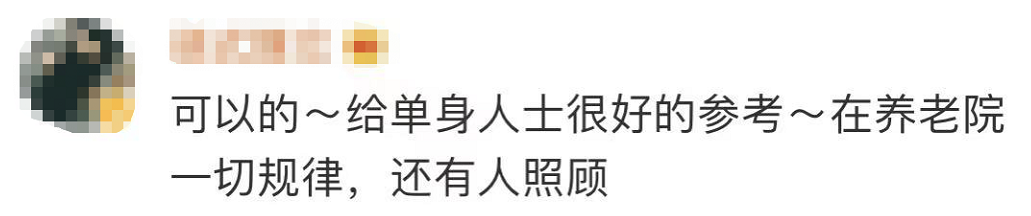 @诺式媒女:生病需要长时间的治疗和康复,单身人士去养老院调养,是很好的选择……规律,清净,专人看护。
