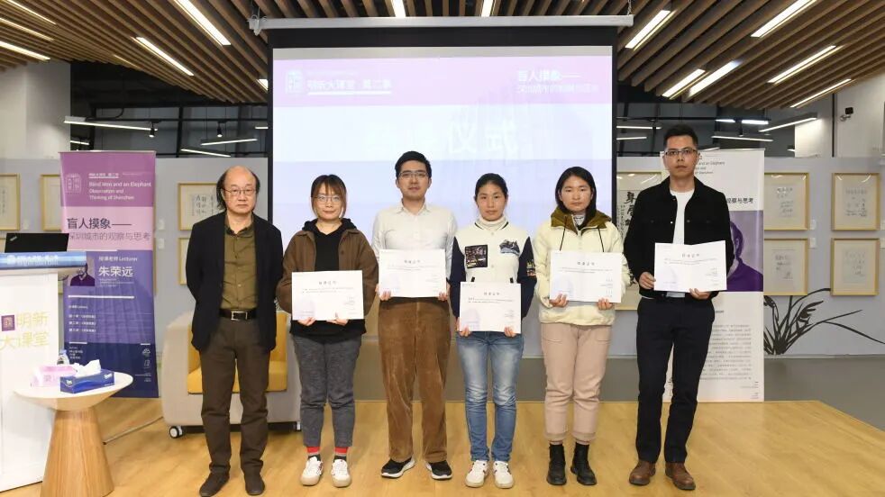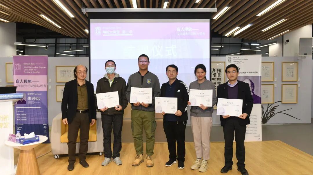 2021年1月17日下午17:00下课铃声响起,《盲人摸象——深圳城市的观察与思考》系列课程走向了尾声,19名学员坚持全勤参加,获得了有朱荣远老师签名的结课证书。