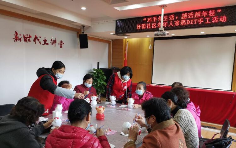 为加强邻里互动,鼓励社区长者自我调适、积极投身社会生活,在圩镇社区党委的领导下,新现代驻圩镇社区党群服务中心的社工近日开展了“巧手伴生活,越活越年轻”老年人涂鸦DIY手工活动。