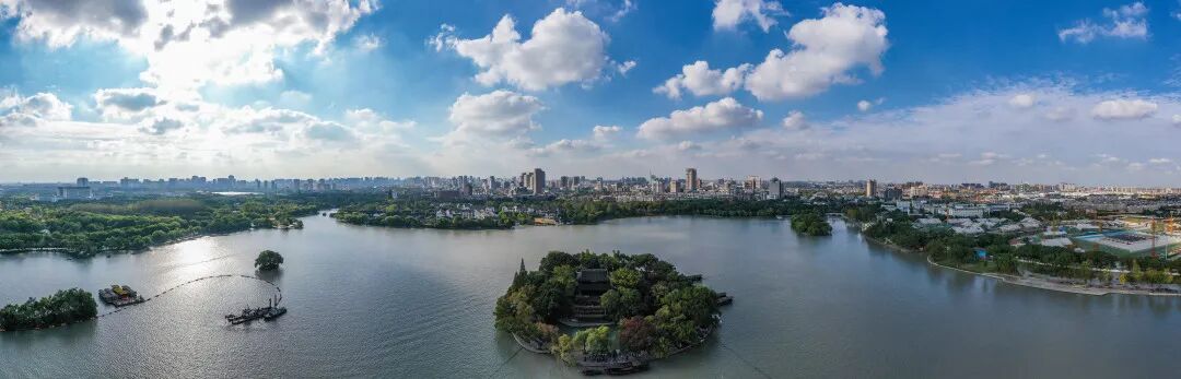 空中俯瞰嘉兴南湖及嘉兴城区(无人机照片,2020年10月27日摄)。新华社记者徐昱摄