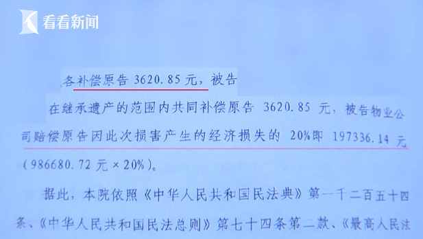 2021年1月15日,判决结果出炉,原告主张的各项费用法院予以支持98万余元。其中19万7千余元由被告物业公司承担,余下80%由26栋2楼以上住户补偿