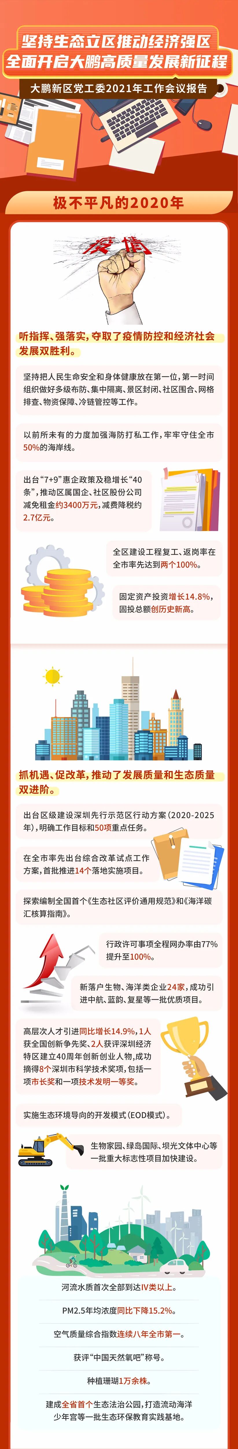 会上都说了什么? 2020年和“十三五”时期 大鹏新区各方面建设取得了哪些成就?