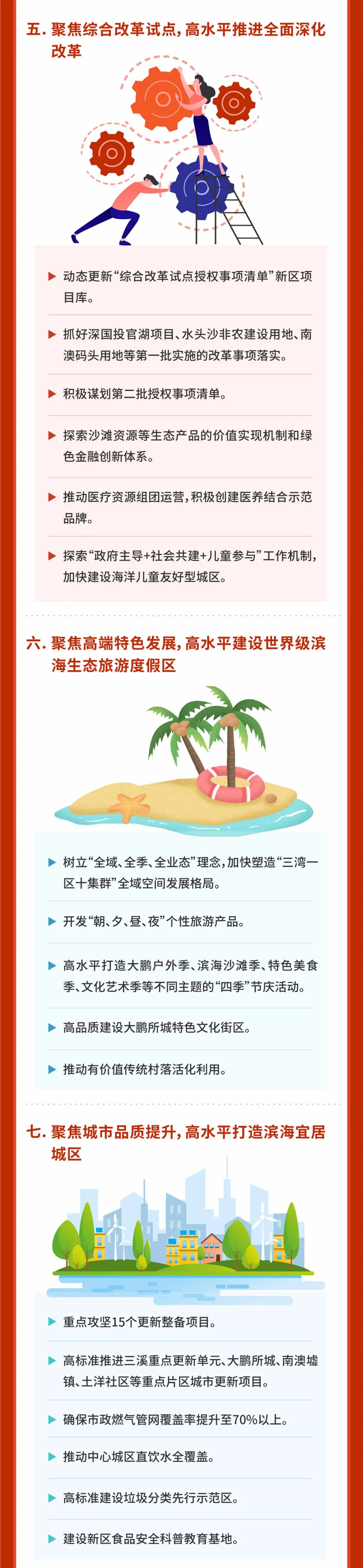 会议总结2020年和“十三五”时期工作,谋划“十四五”发展思路及二〇三五年远景目标,部署2021年重点工作,抢抓“双区驱动”和综合改革试点重大历史机遇,以新担当、新作为全面开启大鹏高质量发展新征程,加快建设全球海洋中心城市集中承载区、打造世界级滨海生态旅游度假区。