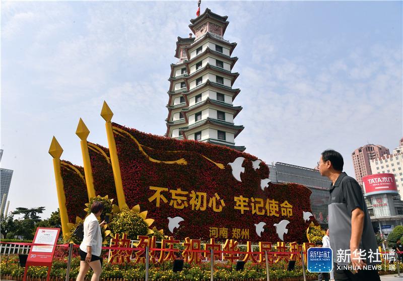 ↑游客在郑州二七纪念塔前(2019年10月2日摄)。新华社记者 李嘉南 摄