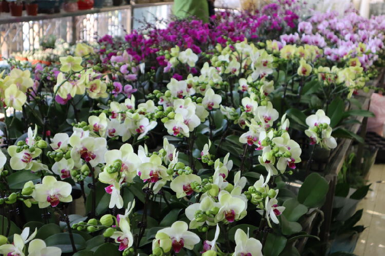 以富贵、华丽为主基调的蝴蝶兰盆栽颇受花卉商家喜爱,基本每家店铺都可见到它的踪影。