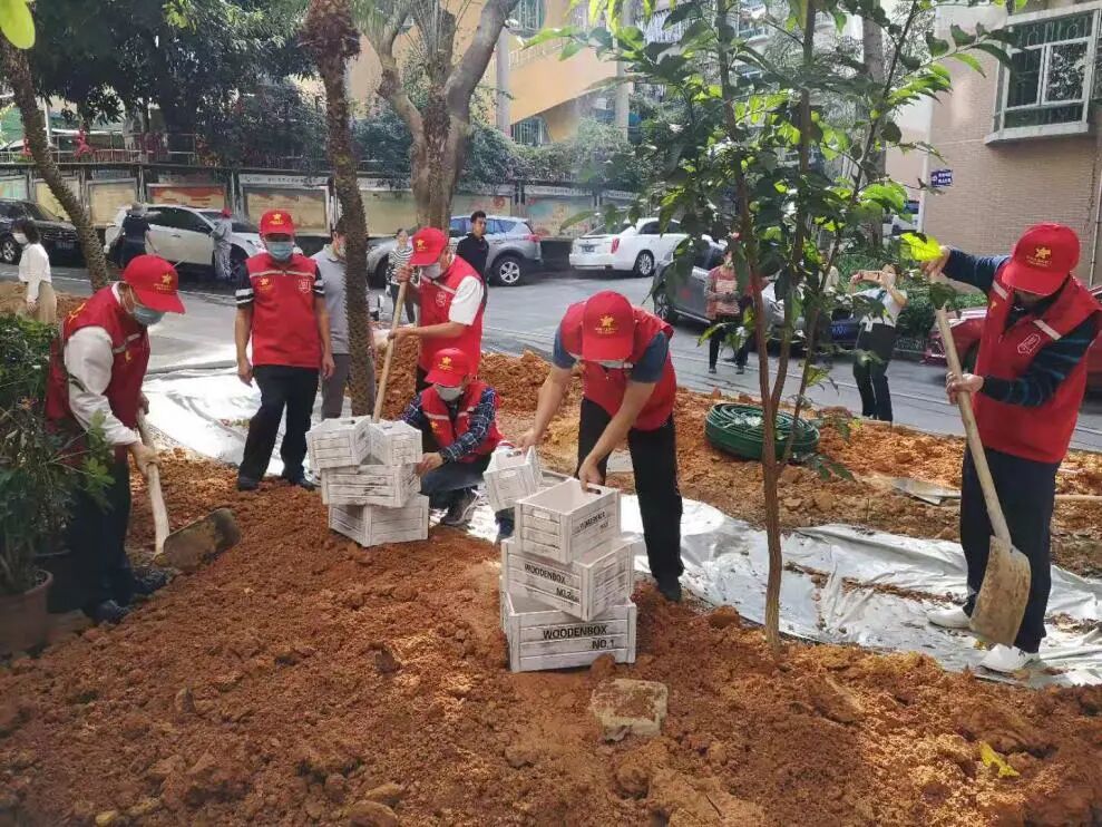 老兵们又化身“施工队”,和居民义工、物业一起现场测量尺寸、挖土种苗、维护绿植,亲自为花园“量体裁衣”。