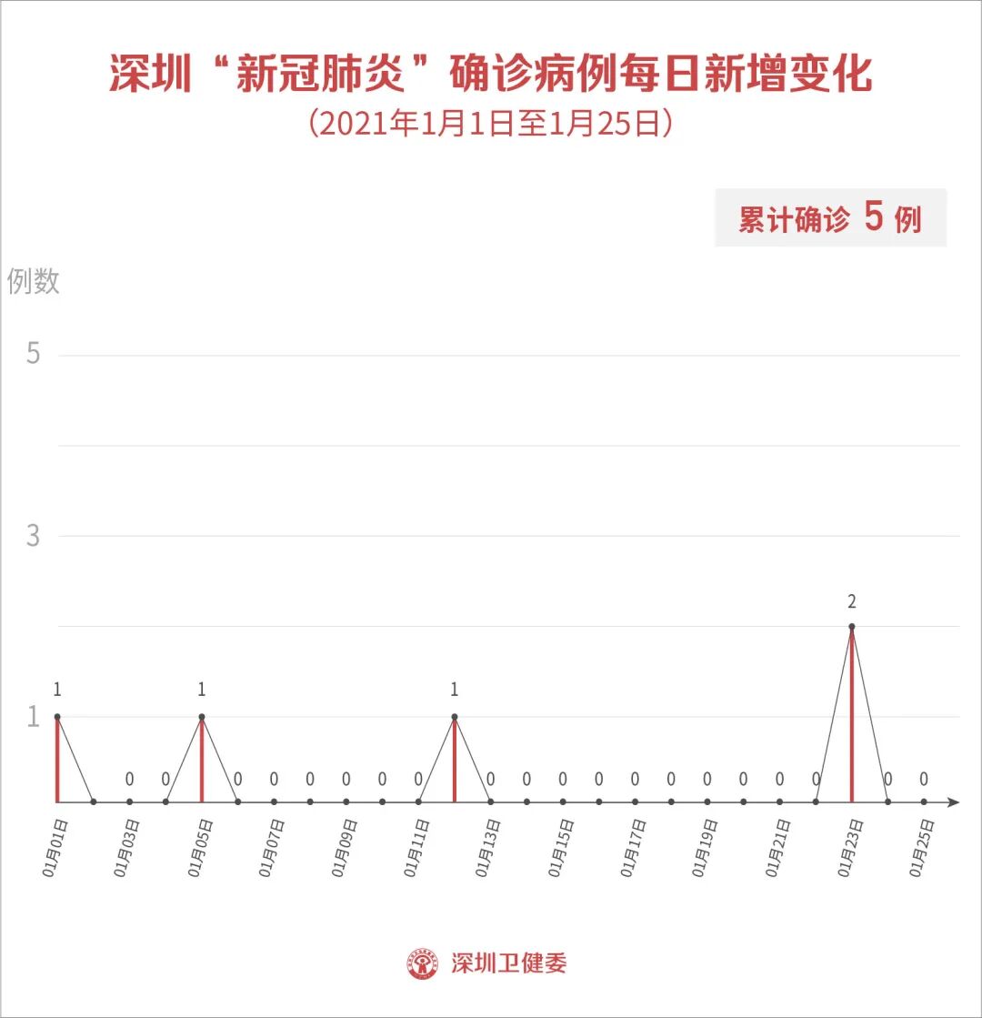 1月25日0-24时,深圳无新增确诊病例,无新增无症状感染者。