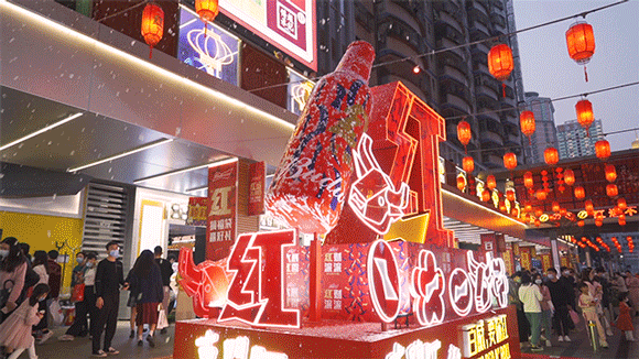 夜幕降临,天空竟然飘起了纷纷扬扬的“大雪”,整条街都被这场“红运泡泡雪景”笼罩,伴着红灯初上,美得如梦如幻。