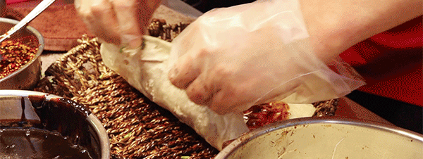 喷香的面饼包裹着牛肉、鸡肉、蔬菜、秘制酱料等,看似简单,但味道却不一般!