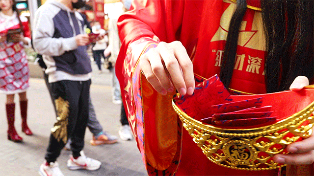 如果你看到了穿玩偶服或者穿古装的人,记得上前去打声招呼,说不定就会收获棉花糖、糖葫芦领用券、礼品领用券、美食抵用券等惊喜哦~