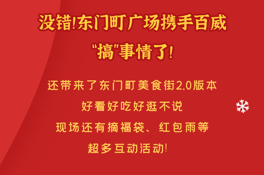 喜迎新春,东门町广场全新升级,1月23日~2月26日,“町町嘉年华”盛大来袭。美食街、巡游互动、美陈打卡…来东门町解锁100种新春玩法,就算不能回家团圆,留在深圳也不会感到孤单。