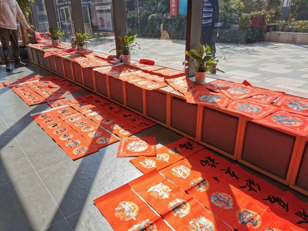 在渔民村的党群服务中心,来自罗湖区书法家协会的书法家们用多种书体,写下数百幅春联与福字,赠送给渔民村居民。