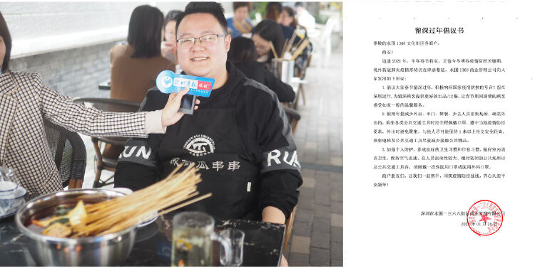 2021年为防控疫情,深圳作为低风险地区号召“原地过年“,水围1368也向商户发出了《留深过年倡议书》,六十余家商户纷纷响应,为市民提供一个品尝多元美食的好选择。