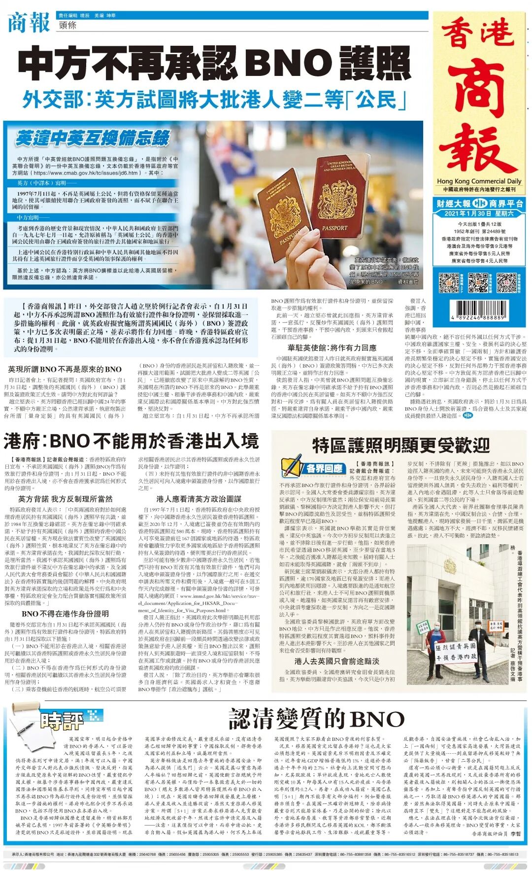 昨晚,香港特区政府宣布:从1月31日起,BNO不能用于在香港出入境,亦不会在香港获承认为任何形式的身份证明。