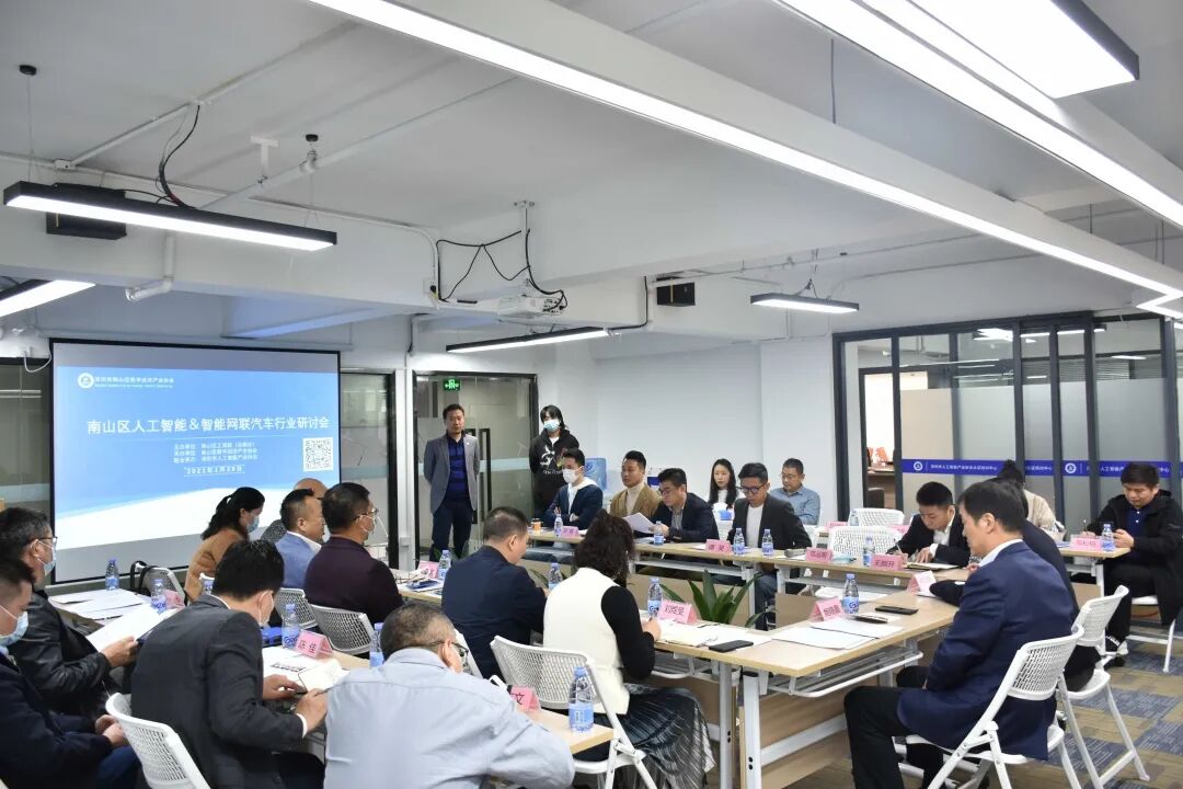 1月29日上午,由南山区工商联(总商会)主办、南山区数字经济产业协会承办的“南山区人工智能&智能网联汽车行业研讨会”在深圳湾科技生态园成功举办。区委常委、统战部部长鲍晓晨,区工商联专职副主席肖晓青,区工信局副局长王颜开,区企服中心副主任刘煜旻,区科创局四级调研员何贤佳,数字经济产业协会执行会长范丛明及辖区赛格导航、力维智联、普渡科技、达观信息、奥比中光、优必选等人工智能企业的代表参加研讨会