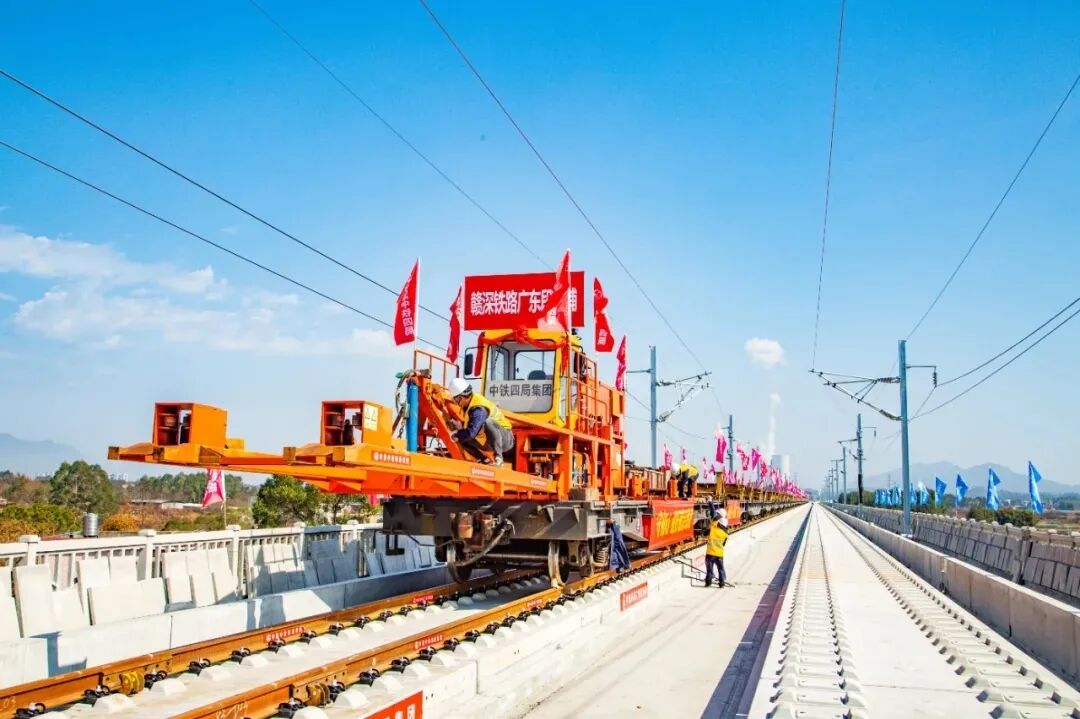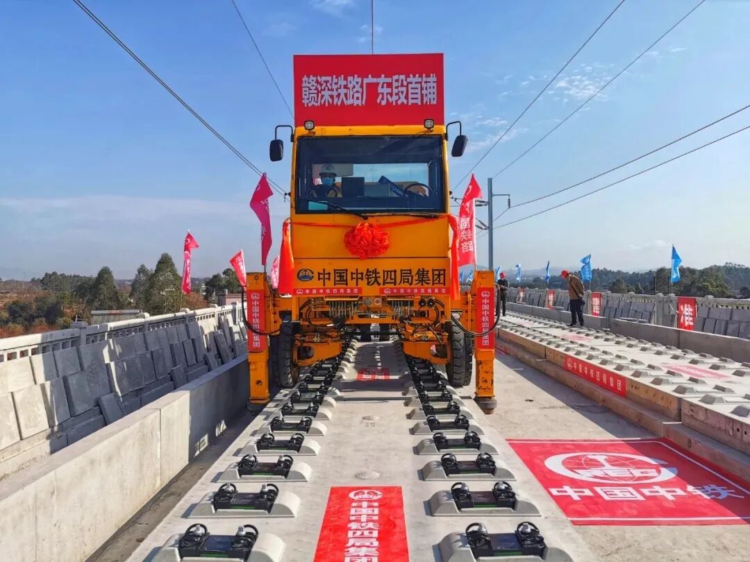 中铁四局承担赣深高铁广东段双线,共计704.9公里铺轨任务。其中无砟轨道铺设604.5公里,有砟轨道铺设100.4公里。