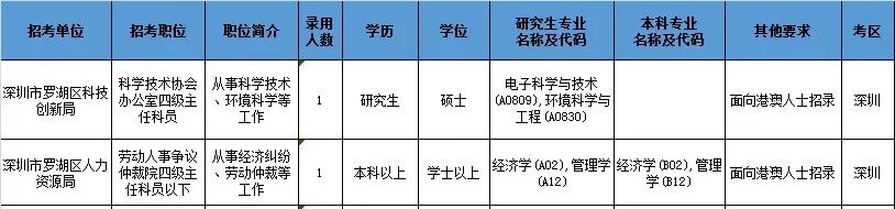 2个职位的招录单位分别为深圳市罗湖区科技创新局、罗湖区人力资源局,每个单位招1人。