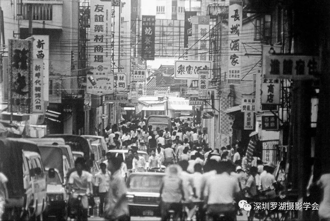 1986年,老街解放路充满南粤风情的老房子与周围拔地而起的高楼大厦形成鲜明的对比