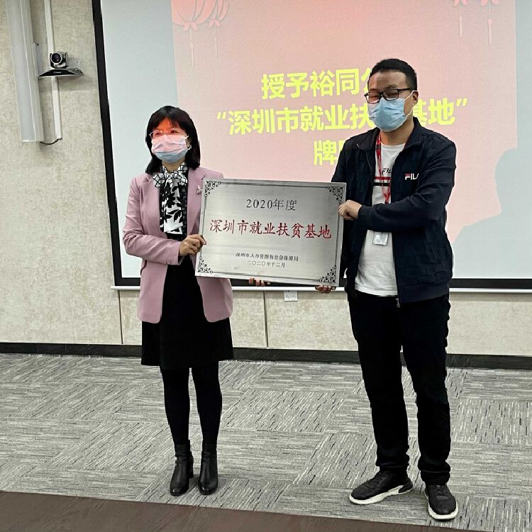 在启动仪式上,区人力资源局向35名建档立卡人员赠送了留深“大礼包”并慰问了两名建档立卡困难人员,同时授予裕同公司“深圳市就业扶贫基地”牌匾。