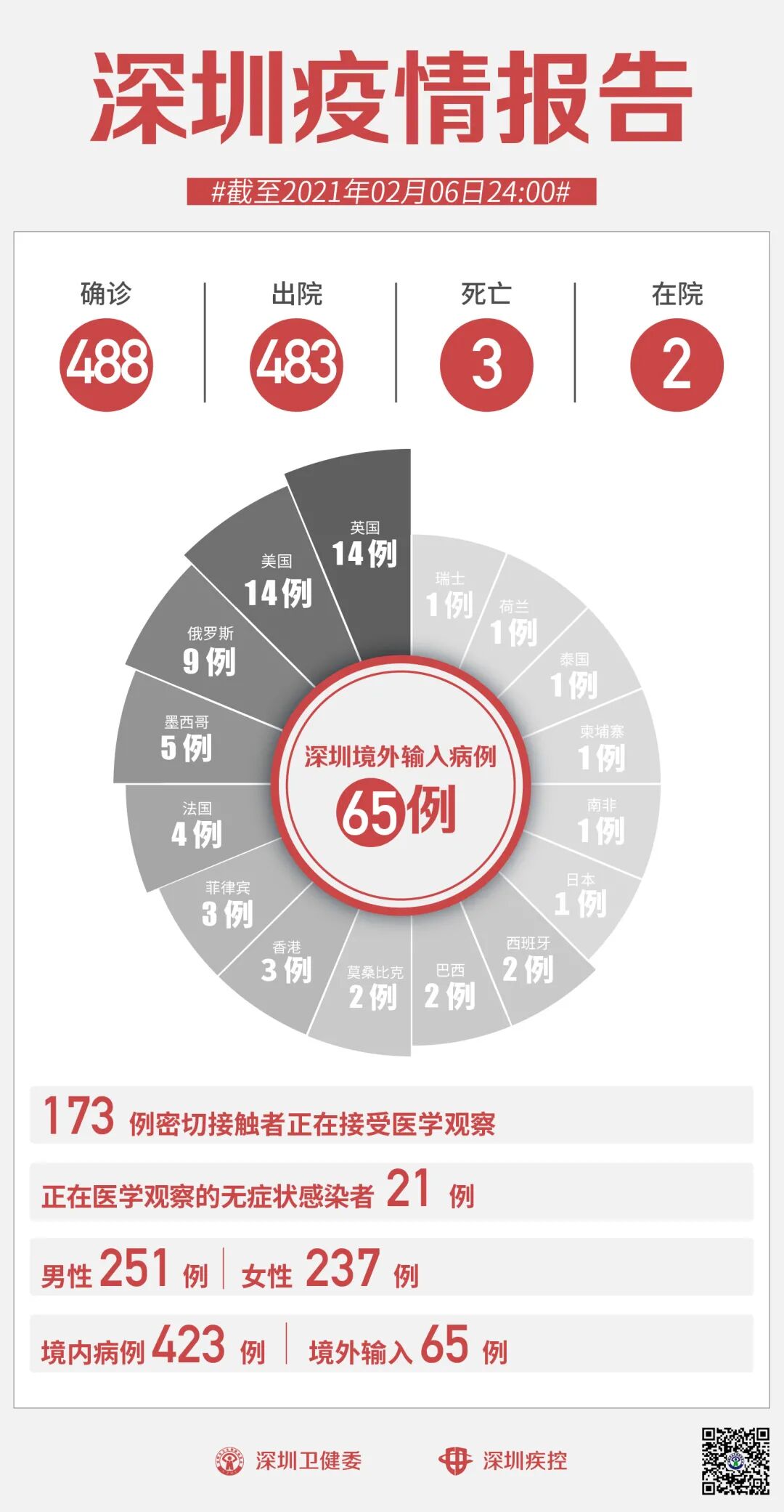 2月6日0-24时,深圳新增4例境外输入无症状感染者。