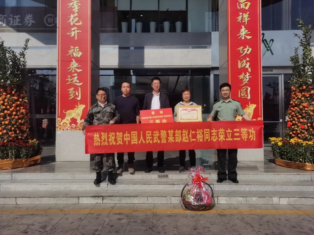“恭喜恭喜,你的儿子在部队表现优异,不久前荣立了三等功。”工作人员来到赵仁裕战士家中道贺,同时送上喜报、慰问金、慰问品以及新春祝福,并与家属促膝交谈,详细了解赵仁裕在部队的服役情况、询问军属的身体状况和家庭生活情况,感谢他们为部队、为祖国培养出优秀人才。