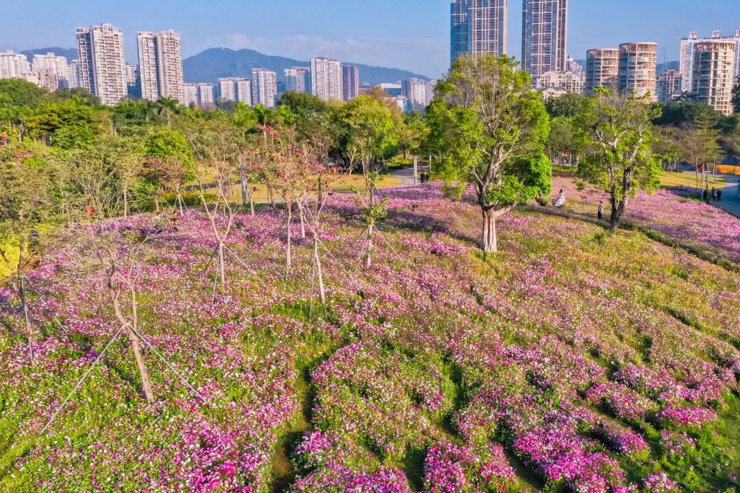 为了让市民朋友们留在福田过年收获幸福感,感受美好祥和的新春氛围,福田区城市管理和综合执法局践行共建共治共享理念,联合工匠学院学员、市民志愿者们共同打造由盛开繁花组成的浪漫花境景观,在香蜜公园呈现出百花怒放的节日盛景。花开幸福年,绽放贺新春,绚烂花海装点园区各处,以花为媒,传递着对新一年美好的期许和祝福,希望市民朋友们的生活像花一样甜蜜幸福。