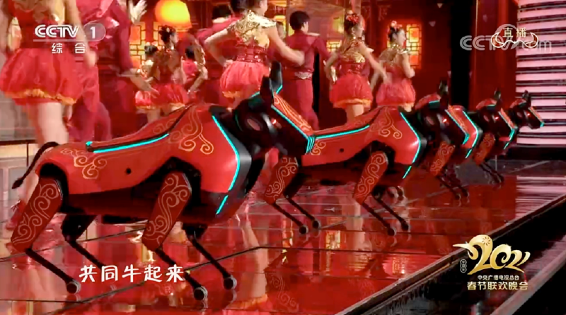 2月11日,在央视2021牛年春晚的舞台上,宝安企业优必选科技全新研发的首款大型四足机器人化身“拓荒牛”,与刘德华、王一博、关晓彤等一起呈现了科技感十足的创意表演《牛起来》。