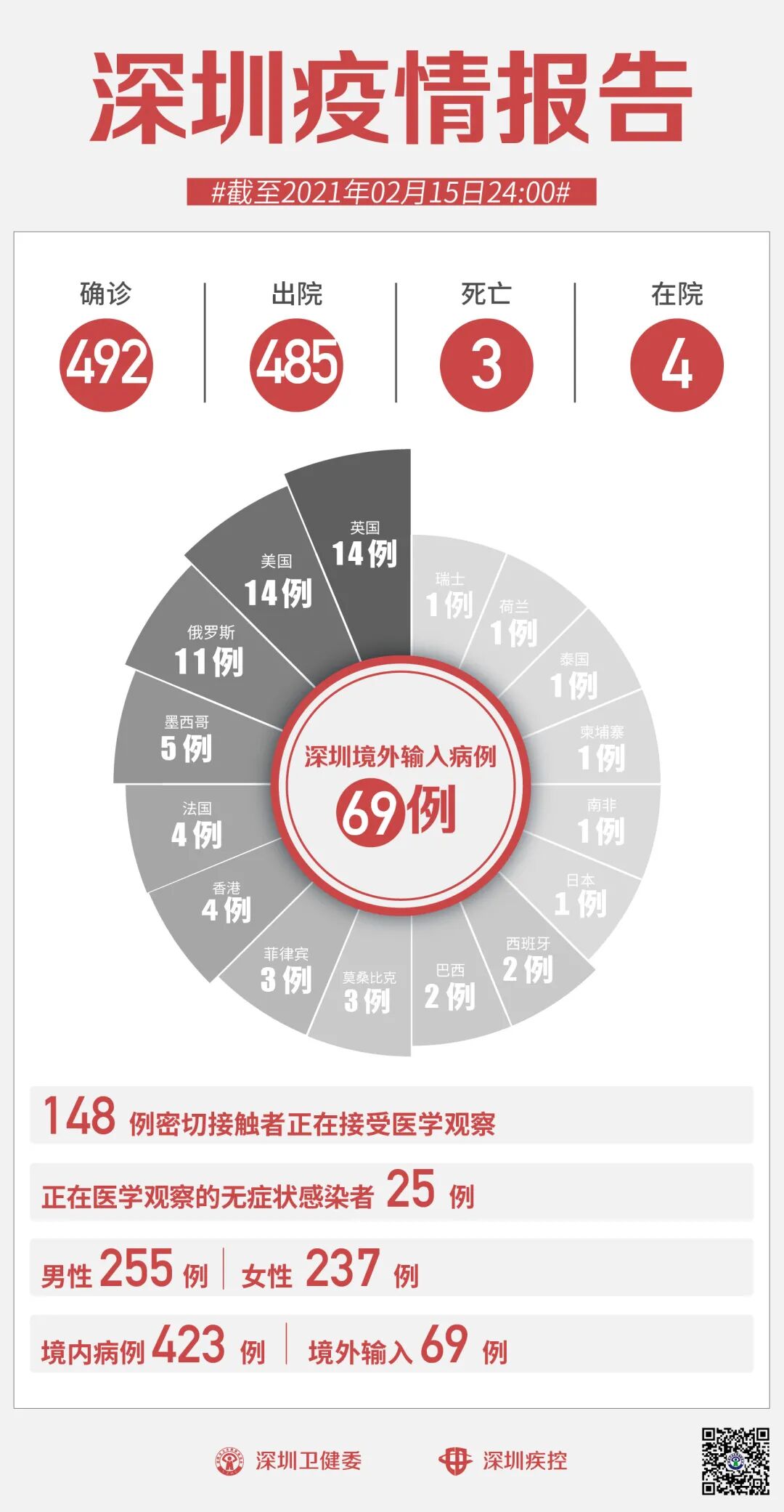 2月15日0-24时,深圳新增1例境外输入无症状感染者。